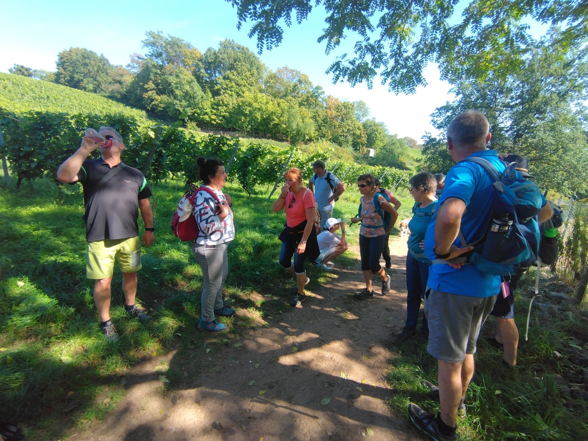 Start und Ziel für die 23 Wanderfreunde (und ein Hund) waren diesmal die Weinberge von Radebeul.